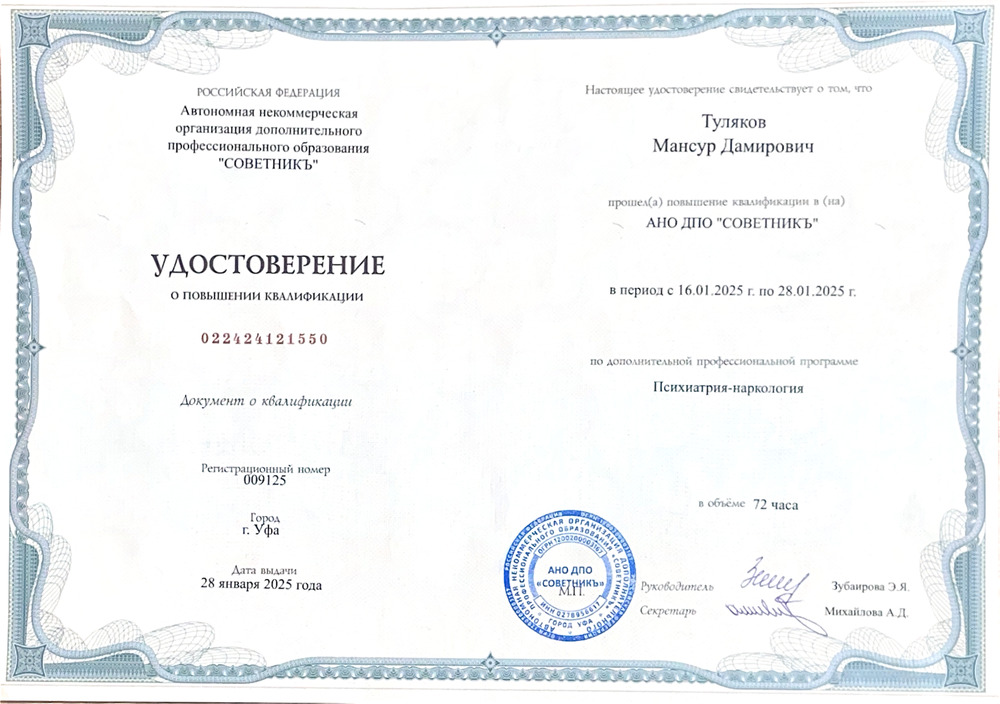 Кандидат медицинских наук, врач психиатр-нарколог, психотерапевт.